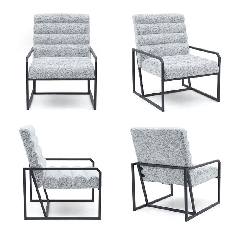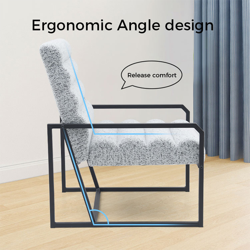 Ceadaíonn dearadh eirgeanamaíochta an chathaoir duit recline agus scíth a ligean go compordach tar éis lá fada. Soláthraíonn an fráma iarainn miotail sturdy cobhsaíocht agus tacaíocht, rud a fhágann gur rogha maith é le húsáid in aon seomra den teach.
