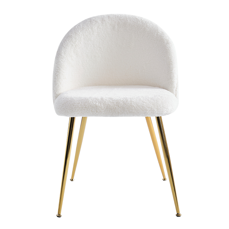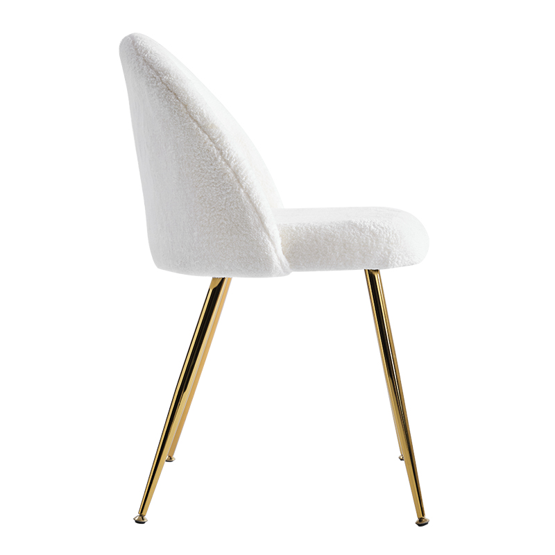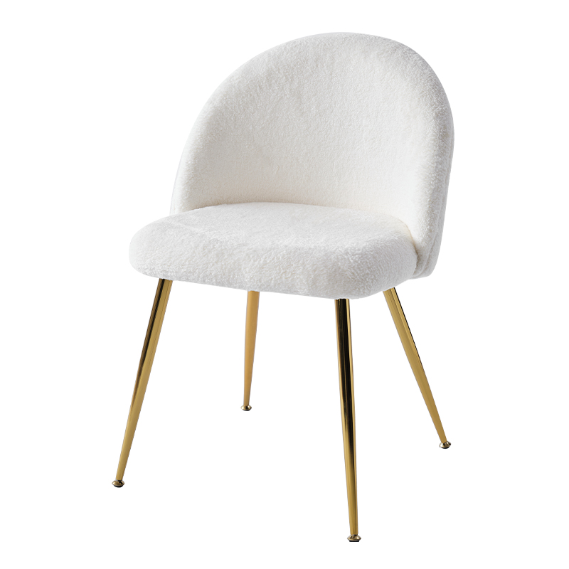 Soláthraíonn a fabraic lomra teidí bog mothú cluthar agus te, rud a fhágann go bhfuil sé go maith le húsáid i seomraí bia, seomraí suí agus seomraí codlata. Tá bonn órga i ndearadh galánta an chathaoir a chuireann teagmháil le glamour agus sofaisticiúlacht le haon spás.