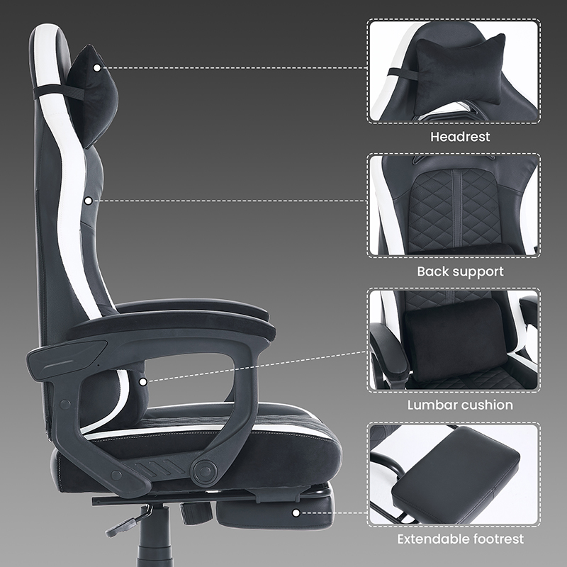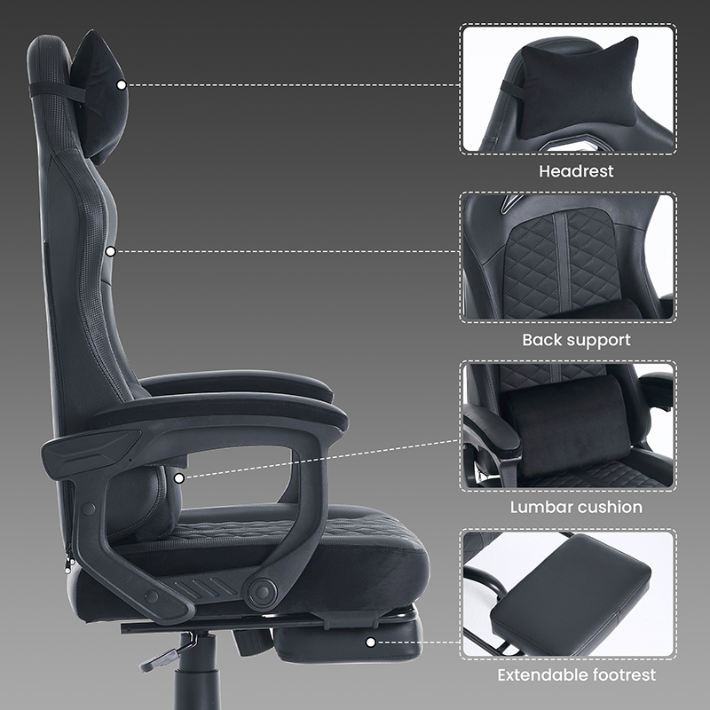 Ní féidir le cathaoireacha oifige traidisiúnta freastal ar riachtanais úsáide fadtéarmacha agus ard-déine gamers nua-aimseartha a thuilleadh. Dá bhrí sin, déanann na Cathaoirligh Cearrbhachais Ríomhaireachta arna seoladh ag Anji Guyou machnamh iomlán a dhéanamh ar phrionsabail na eirgeanamaíochta i ndearadh, agus úsáideann siad cúr cuimhne ard-dlúis chun an suíochán agus an backrest a líonadh chun a chinntiú gur féidir le himreoirí fós staidiúir shuí compordach a choinneáil le linn cearrbhachas fadtéarmach, ag faoiseamh go héifeachtach an brú ar chúl, muineál agus cromáin.