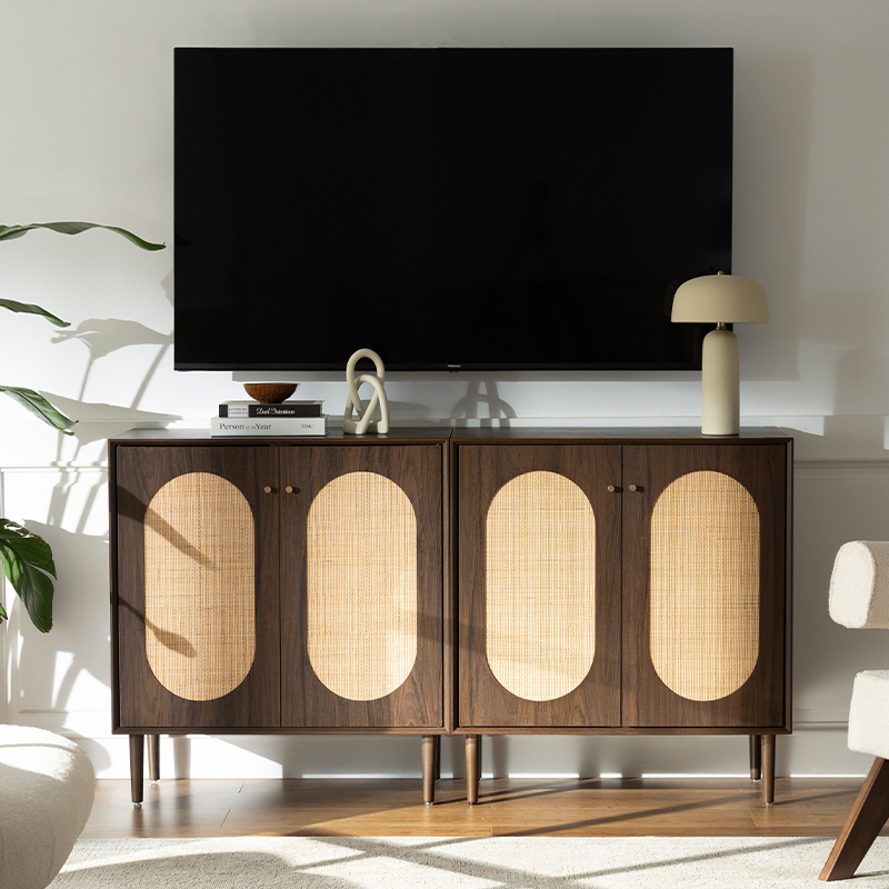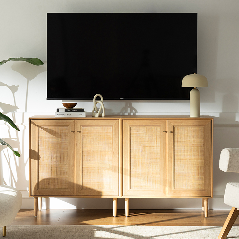 | Ábhar | Clár adhmaid soladach le bailchríoch MDF agus Baile Átha Troim fíor RatánComment |